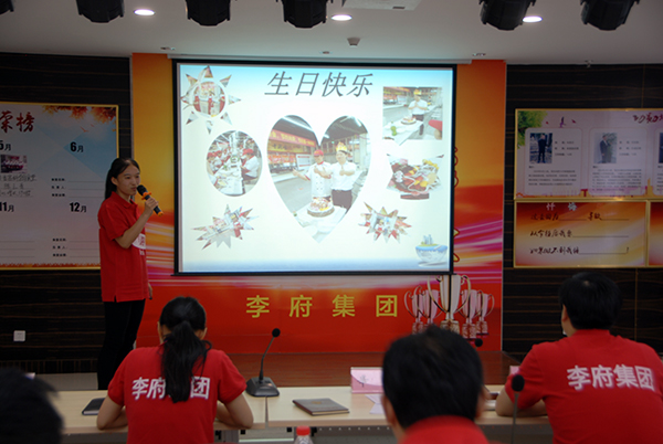 隆重的落地委换届仪式后,迎来企业自转一周年庆祝环节,集团为全体参会人员准备了巨大的生日蛋糕,由辛董和朱总携手给大家分蛋糕,这就像企业自转的分红一样,让每一位李府家人品尝到自转的成果。庆祝环节后,进入李府家人翘首以盼的5-6月份分红大会时间。各自转食堂经理带领其团队上台领奖,本次分红是各自转食堂5-6月份经营成果的回报。各团队纷纷表达对大爱的辛董感恩之情,并承诺竭尽全力,达成使命,在做好食品安全的基础上,进一步提高经营业绩。