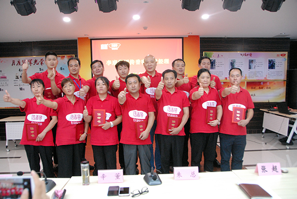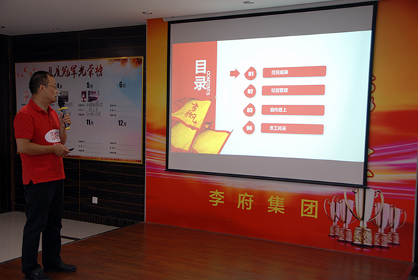 会议伊始,集团下辖定远二中团队为李府家人们带来节奏轻快、热情高昂的团队展示,赢得了现场雷鸣般的掌声和欢呼声。紧接着各自转效果尤为显著的食堂经理代表逐个上台以PPT的形式向大家展示了6-7月份自转落地成果,本着“老板解放,员工绽放”的自转理念,各自转食堂在食堂经理与落地委成员共同努力,采用承包、对赌等机制,充分发挥主观能动性,通过改善菜品质量和花色品种,加强人文关怀等方式提高食堂的经济效益和社会效益。最终,经过评委现场打分,传香客安医大团队再次斩获“最佳PPT奖”。PPT展示结束后,集团下辖各传香客食堂负责人逐一上台开展“抢地盘演讲赛”,本次演讲赛秉承公开、公平、公正的原则,凭借完善的经营计划、规范的经营管理,各传香客食堂经理相继获得各自食堂的经营权。随后,各传香客食堂负责人带领各自团队逐一上台与辛董签订食堂经营机制并接受辛董的聘任书,逐一宣誓并合影留念。