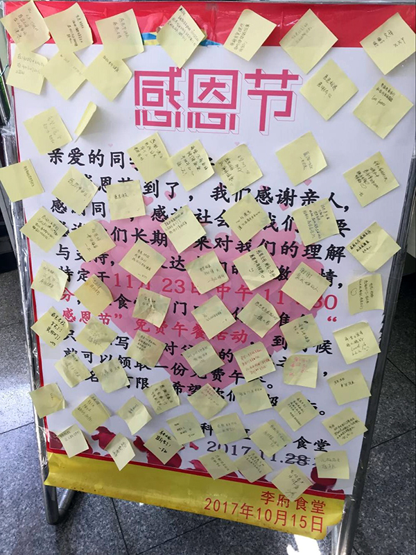 活动期间,各传香客食堂根据当地不同的情况,纷纷开展免费送水果、送饮品、送就餐券等多种方式的活动,此起彼伏。其中,以感恩节当天传香客安徽科技学院食堂开展的免费就餐活动尤为引人注目,得到了校方领导和就餐师生的一致好评。