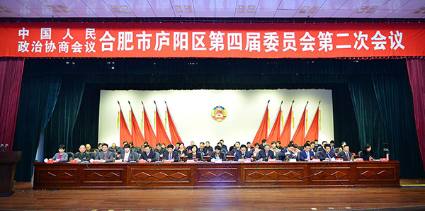 中国人民政治协商会议合肥市庐阳区第四届委员会第二次全体会议于12月21日上午8:30在区政务中心大礼堂隆重召开。应邀出席大会并在主席台就座的有:区委书记徐静平,区委副书记、区长黄卫东等多名领导同志。我集团董事长辛国芳先生作为庐阳区政协委员,应邀参加此次会议。
