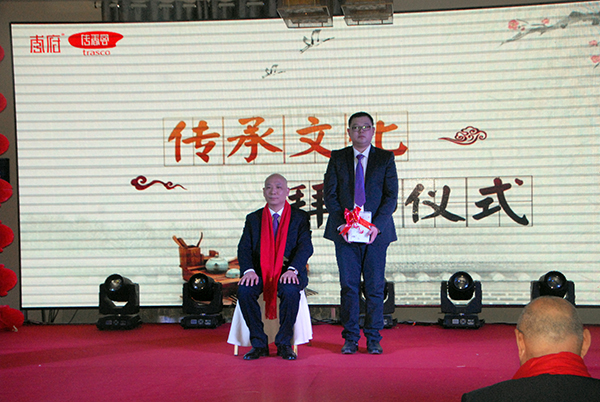 中华上下五千年文明历史,自古以来素有“礼仪之邦”之称,讲究尊师重道,注重拜师礼仪,秉承上述思想,在传香客淮师大团队的《谢谢你》之后,集团董事长辛董再次收徒,师徒之间彼此宣誓,紧紧相拥,场面庄重而严肃。