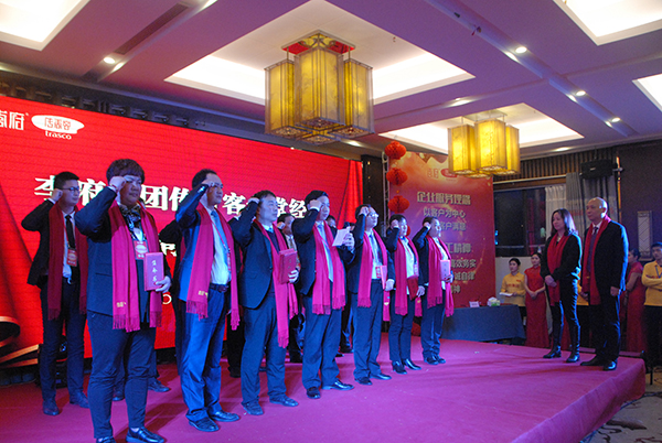 孝道环节之后,各传香客食堂经理带领各自团队逐一上台与辛董签订食堂经营机制,集团副总经理、落地委领袖张超做为第三方见证此环节并给各传香客食堂经理颁发聘任书、旗帜。食堂自转承包机制的签订充分体现我集团贯彻落实“我的地盘我做主、我的责任我承担、我的生命我体验、我的利益我享受”这一原则,将“百年李府梦”与每一位员工结合在一起,真正做到企业富、员工富。