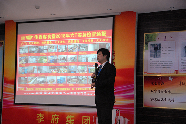 会议伊始,人力部和总经办分别宣读了开学至今的集团红头文件,财务部通报各传香客食堂2、3月的经营数据并就“钉钉”系统财务报销与参会人员进行培训。随后,副总经理张超就开学至今各传香客食堂的六T检查结果及排行榜对与会人员进行剖析、点评;副总经理尹正会就各传香客食堂经理的考核结果进行公布并结合公司实际运营情况,对钉钉办公软件的新功能进行宣讲。总经办副主任梁灿就钉钉软件中关于维修审批等事宜对各传香客食堂经理进行相关要求。集团各部门负责人工作汇报完结后,传香客食堂经理代表纷纷就所辖食堂春季开学至今的总结和4月份工作计划进行相应的汇报。