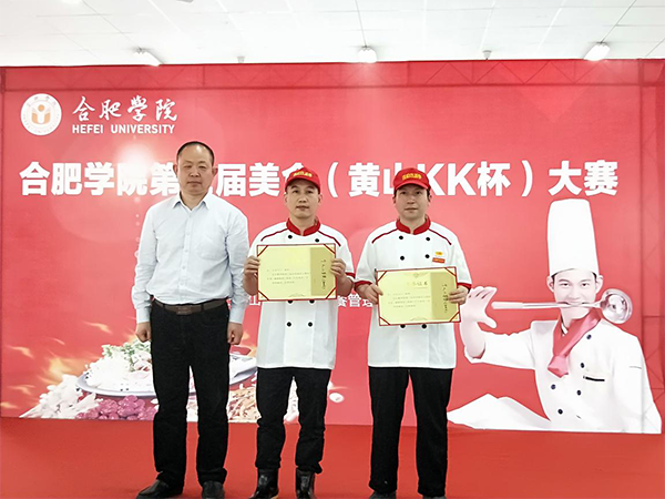 2018年4月22日,合肥学院第二届厨艺大赛在校第三食堂隆重拉开帷幕。出席本次大赛的校领导有校党委委员、宣传部刘樟树部长,校党办、院办白义香主任,校工会崔国庆主席,校学生处董承军处长,校公管处徐劲松处长、陈晟副处长,校后勤集团叶道全副经理、校团委丁婧老师等。裁判长由中国高校后勤协会餐饮专业委员会专家评委、安徽省高校后勤伙专会专业评委、合肥工业大学饮食服务中心李自强总厨和来自本校50名学生代表评委担任。本次大赛共有校内六个食堂参加,12名参赛选手。我集团下辖传香客合肥学院食堂厨师长段其海,厨师黄建春代表我食堂参赛。