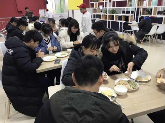 尽管气温很低,制作饺子耗时长,但是同学们还是克服重重阻碍,乐在其中。当一盘盘热气腾腾的饺子端上餐桌,飘满浓浓的饺子香,使大家忘记了冬日的寒意。