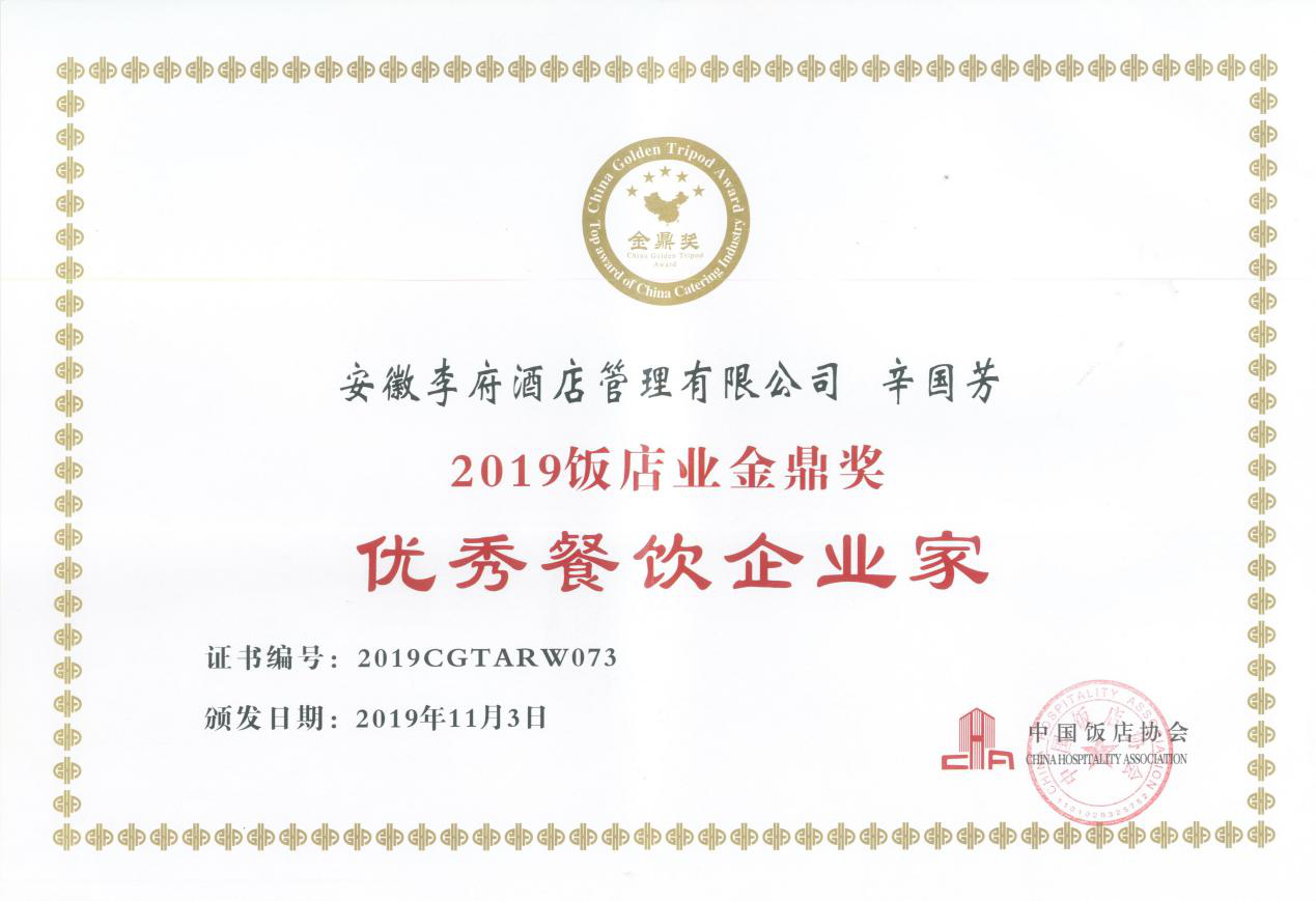 本次美食节上,为了树立行业标杆和服务典范、发挥优秀企业和行业标兵的模范带头作用。11月3日,由国家相关部门批准,由中国饭店协会颁发的全国饭店餐饮行业的权威荣誉——“金鼎奖”颁奖盛典隆重举行。我集团董事长辛国芳先生荣获中国饭店业金鼎奖“2019优秀餐饮企业家”荣誉称号。这是餐饮行业对我集团和董事长辛国芳先生的充分肯定。