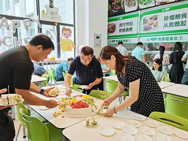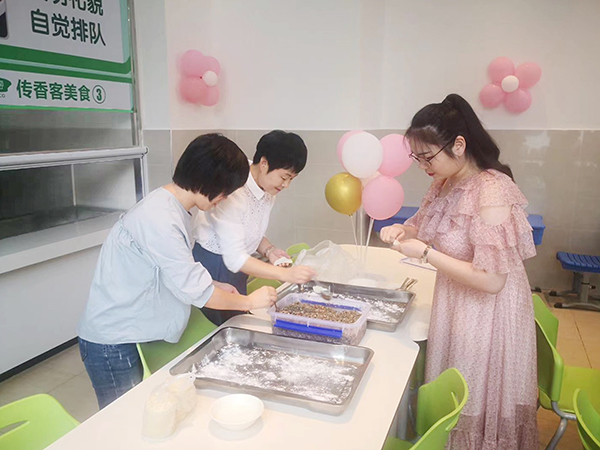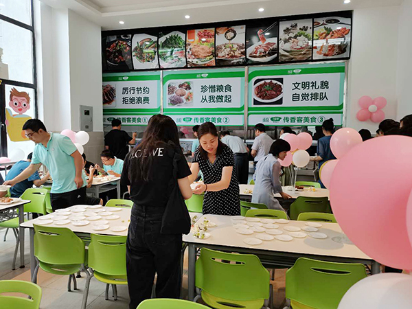 为了让教师们度过一个难忘而有意义的节日,各传香客食堂事先进行了充分的策划和准备。在门口悬挂“教师节快乐”的节日横幅,张贴“感恩教师节”、“教师,您辛苦了”等祝福海报,并在教职工食堂进行了摆放气球拱门、张贴海报等氛围布置。除此之外,传香客七中食堂准备了精美礼品一份、传香客安工业食堂准备了免费水果、传香客安中医食堂准备了手工甜点等教师节惊喜,浓郁的节日气氛感染了每一位前来就餐的教师。传香客合肥三中食堂还精心为前来就餐的教师准备了一份节日蛋糕,并准备了饺子馅、饺子皮等材料,邀请在校教师在食堂开展包饺子活动。合肥三中毛校长、余副校长等几十名教师都参与进来,大家围在一起,一边包饺子一边拉家常,欢声笑语不断,通过这样一种别开生面的方式来庆祝属于自己的节日,既放松了教师们往日工作的疲惫,又增进了彼此之间的友谊。许多教师还在活动现场拍照发到微信朋友圈,对食堂的服务给予赞扬。