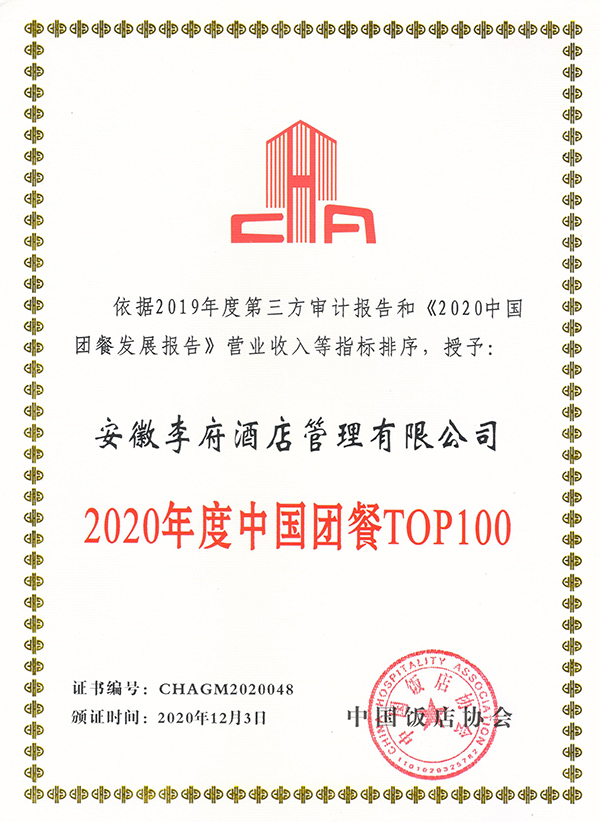 作为团餐行业最具影响力、权威性的年度盛会之一,本次会议深度聚焦餐饮业细分业态发展新趋势,搭建细分业态的新合作交流平台,在促进餐饮消费复苏,引导行业和企业把握发展新格局带来的机遇方面发挥了积极作用。并且本次会议上还隆重公布了“2020年度中国团餐TOP100”榜单,李府集团凭借过硬的实力和良好的品牌影响力,再次荣获中国饭店协会“2020年度中国团餐TOP100”荣誉称号。