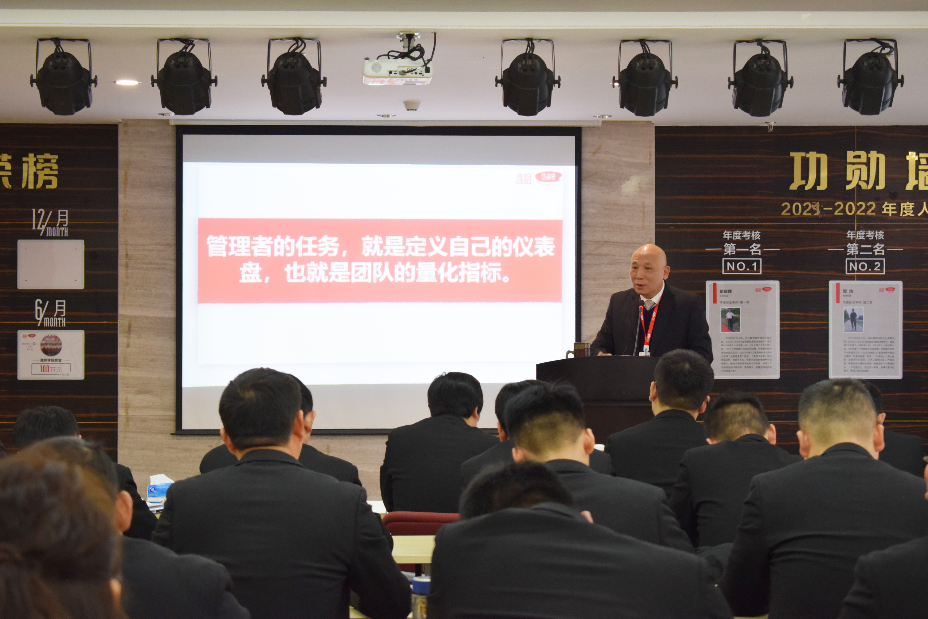 辛董认真听完各部门(食堂)的述职报告后,对一年来各部门、各传香客食堂过去一年工作中取得的成绩予以肯定,对总部及各传香客食堂的辛苦付出致以感谢,并对做好集团2023年度工作进行了重要部署。他指出,2022年是集团历史上具有里程碑意义的一年,集团总体营业收入再创历史新高,获得“安徽省放心消费示范单位、2021年度中国团餐企业百强、2021年度团餐TOP100”等诸多荣誉称号,集团各项薪酬福利、考核机制趋于完善,中央厨房工厂项目正在有条不紊地建设中,采购管理及办公监管体系迈向信息多元化等,整体交上了一份满意的答卷。2023年是集团全面转型高质量发展五年计划的第二年,也是全面落实“李府三好”,落地“创兴项目”的关键之年。集团要继续坚持稳字当头、稳中求进的工作总基调,以开拓创新为根本动力,坚持系统观念,强化奋进姿态,以稳促进、以进保稳,巩固2022年取得的成果,更好的实现高质量发展。会上,辛董登台为全体与会人员培训了“结构化管理”等课程,大家听完辛董的讲解后都受益匪浅。