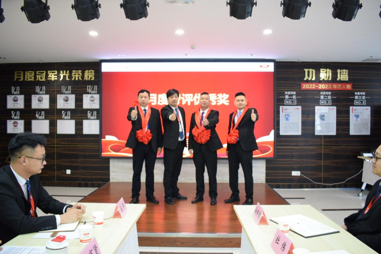 会议在主持人开场致辞及全体人员合唱会歌《团结就是力量》中拉开帷幕。会上,集团各部门负责人就本部门4月份的工作重点进行了布置。财务部经理张跃就集团下辖各传香客食堂财务数据及经营完成情况进行数据分析,并开展李府央厨产品品类知识考试。副总经理尹正会通报3月份各传香客食堂经理的考核结果及食堂各岗位产值完成情况分析,并对考核优秀的洪家玉经理、梁浩经理、彭良胜总监进行表彰,三位优秀管理人员共同登台感谢集团的大力栽培,并就各自工作经验进行了分享。副总经理张超公布3月份传香客食堂“五星排行榜”和经营分析表,并开展《食堂经营管理手册2.0》、《学校食堂食源性疾病爆发发生趋势和防控要点》知识培训。副总经理崔君秋宣读集团下发的红头文件,并将总经办的工作要求向参会人员进行了布置。