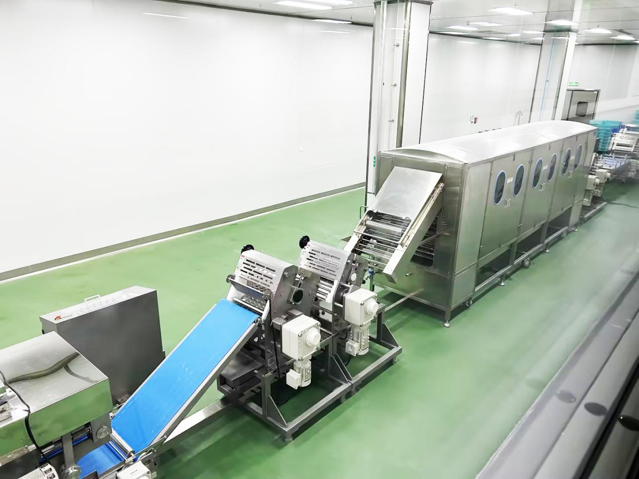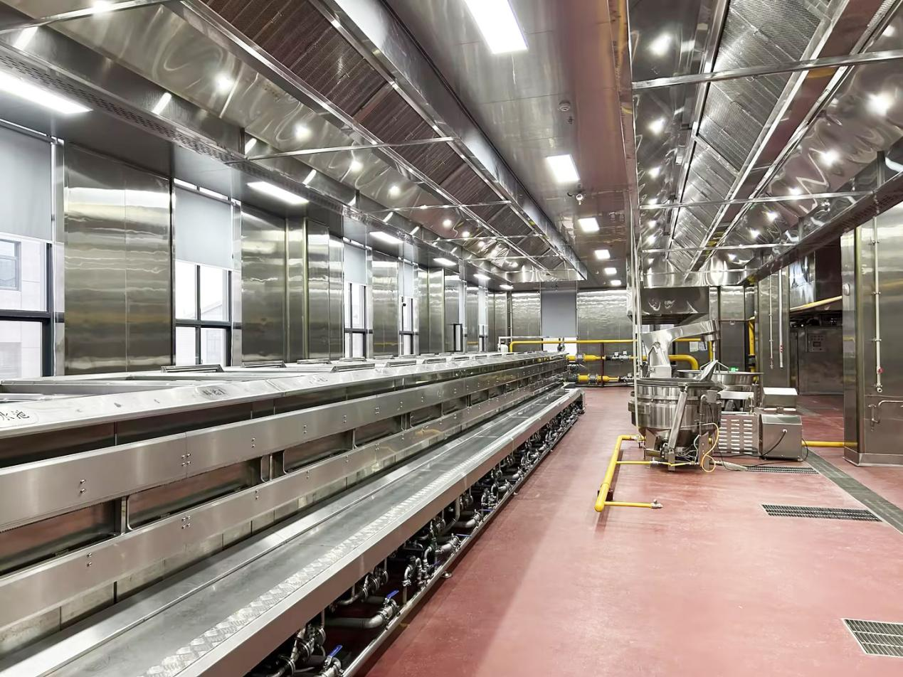 在参观过程中,洪军总经理一行领导实地察看了“李府央厨”的现代化食材检验室,对工厂的全自动化食材生产线、先进的仓储冷链物流配送体系以及严苛的食品安全管理措施进行了全面了解。他们对央厨所引进的高端自动化生产设备、严格的食品安全管理流程以及全方位产品质量检测体系表示了高度赞赏。
