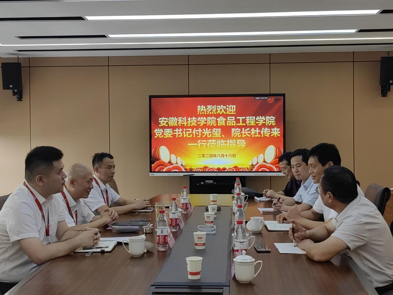 2024年8月16日,安徽科技学院食品工程学院党委书记付光玺,院长杜传来,副院长翟立公、郑海波及食品营养系主任桑宏庆一行莅临我集团旗下中央厨房—安徽创兴食品有限公司,举行“校外实践教学基地”授牌仪式。集团董事长辛国芳、副总经理崔君秋、生产管理部总监唐钢出席了本次仪式,共同见证了这一重要时刻。