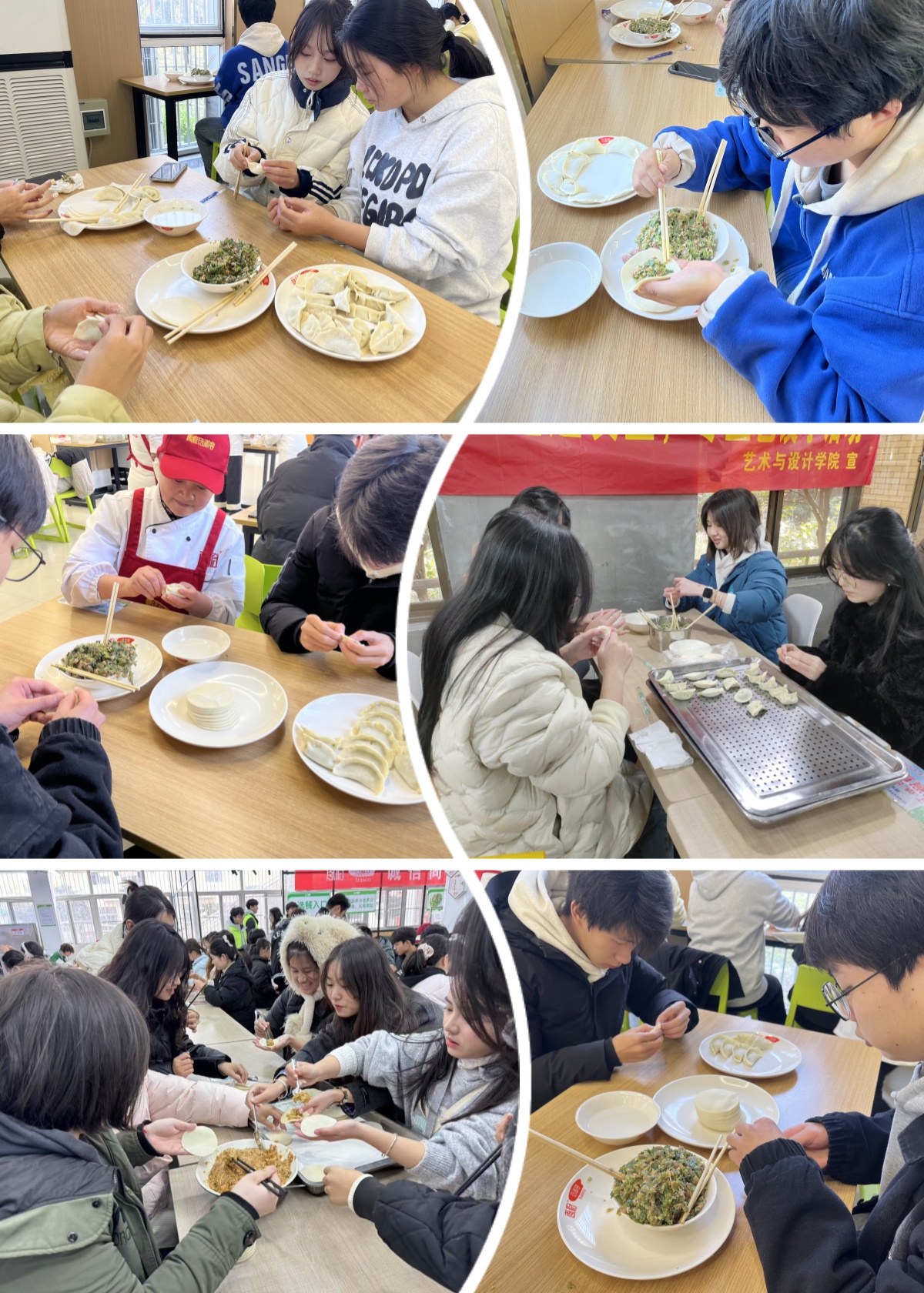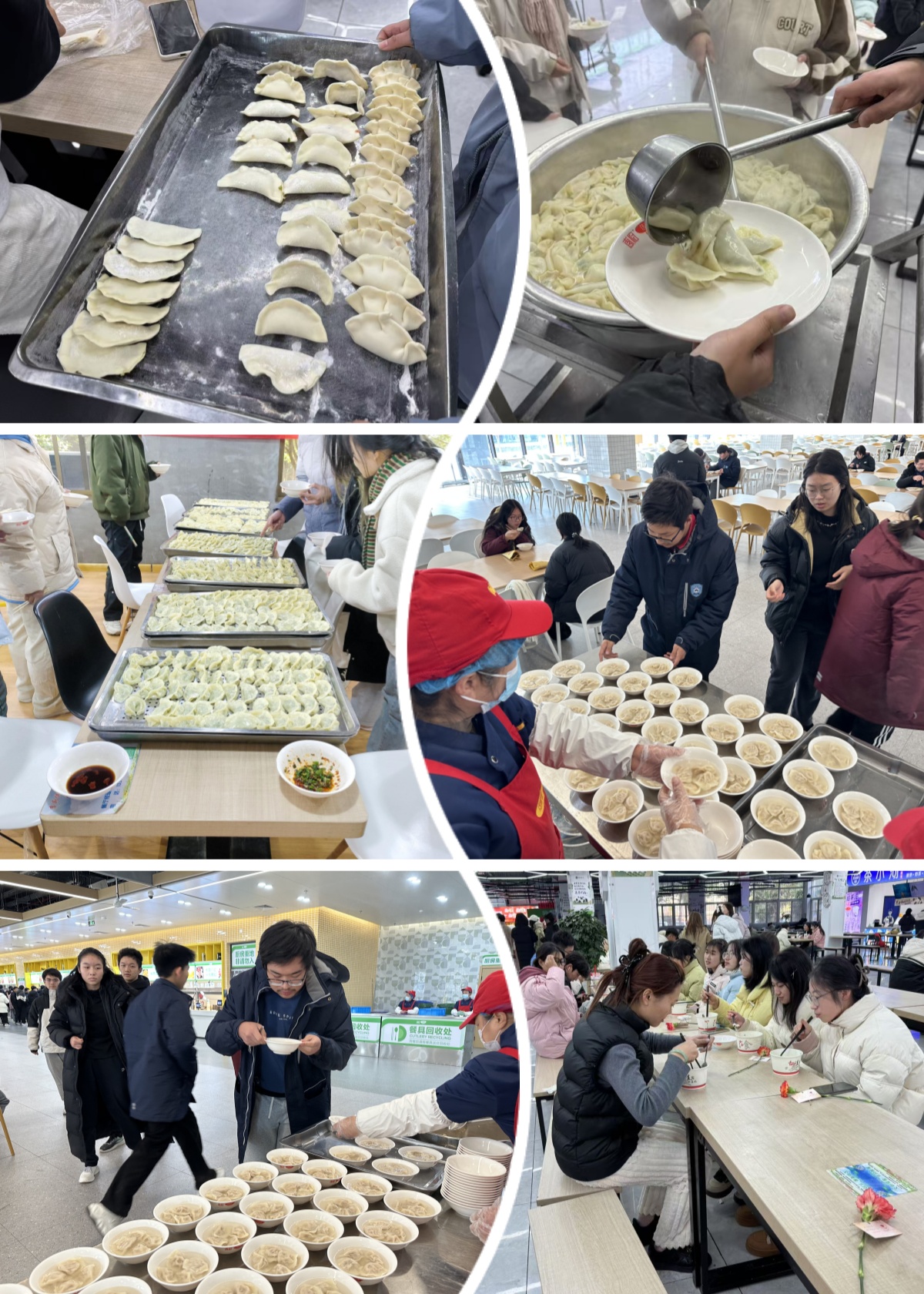 活动当天,各传香客食堂内热闹非凡,饺子制作区成了师生们欢聚的焦点。在食堂师傅的悉心指导下,大家纷纷动手参与,从饺子皮的擀制到馅料的填充,再到巧手捏合成型,每一步都充满了乐趣与成就感。大家不仅享受到了动手制作的快乐,更在合作与交流中加深了对彼此的了解与友谊。