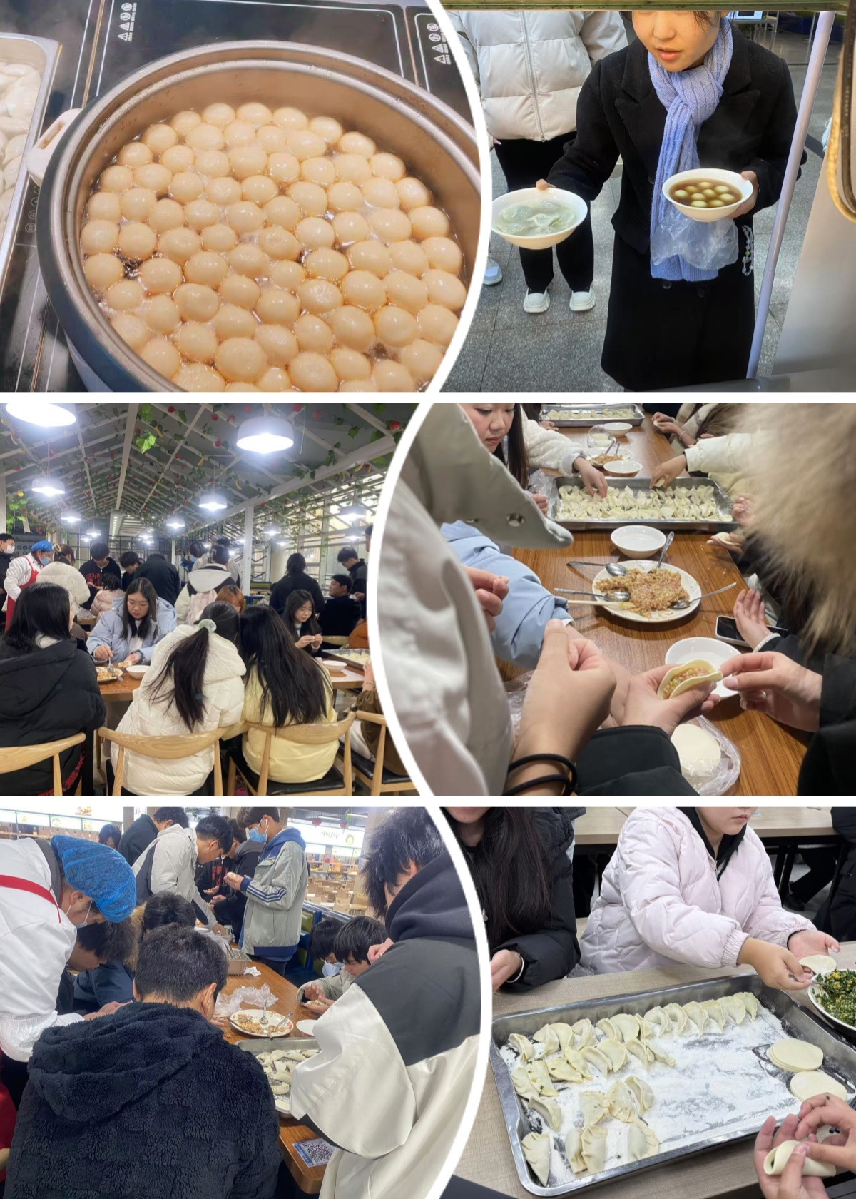 与此同时,部分传香客食堂还特别准备了美味的饺子和汤圆,作为冬至的另一种传统美食,汤圆寓意着团圆与美满。当一盘盘热腾腾的饺子与一颗颗晶莹剔透的汤圆出锅时,食堂工作人员迅速将它们打包好,并亲自送到师生手中。这份来自食堂的关怀与心意,如同一股暖流,温暖了每一个收到饺子与汤圆的人的心田。