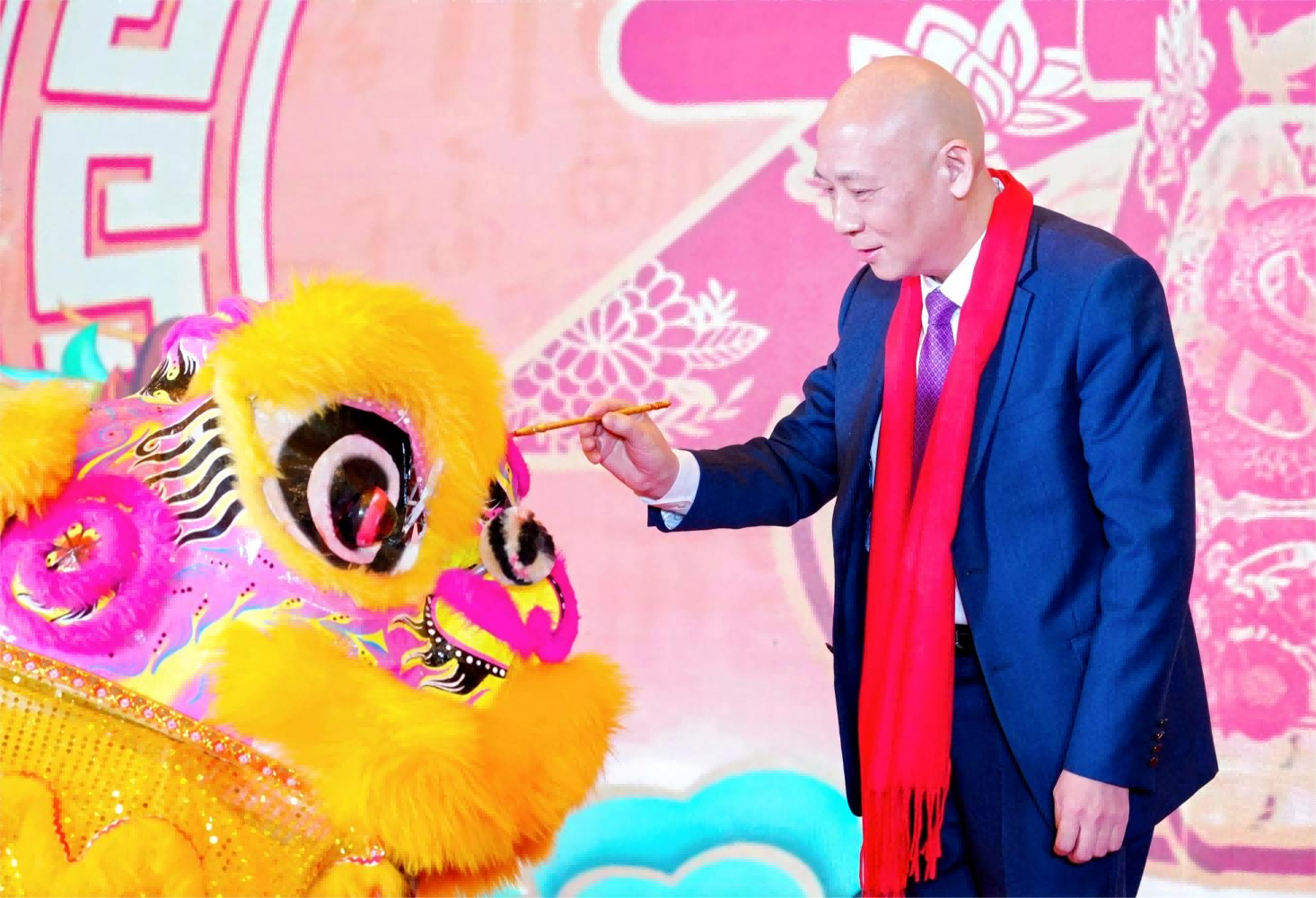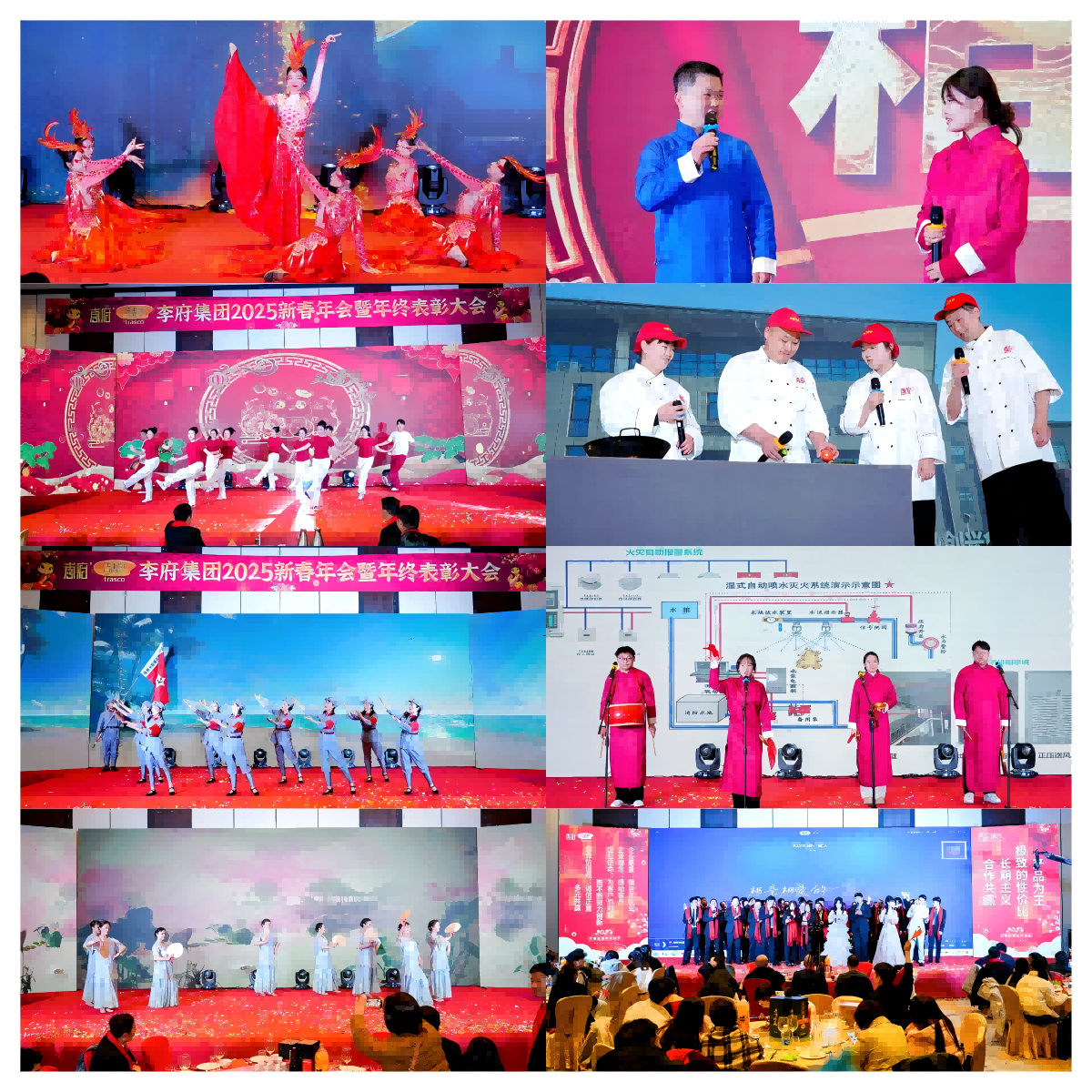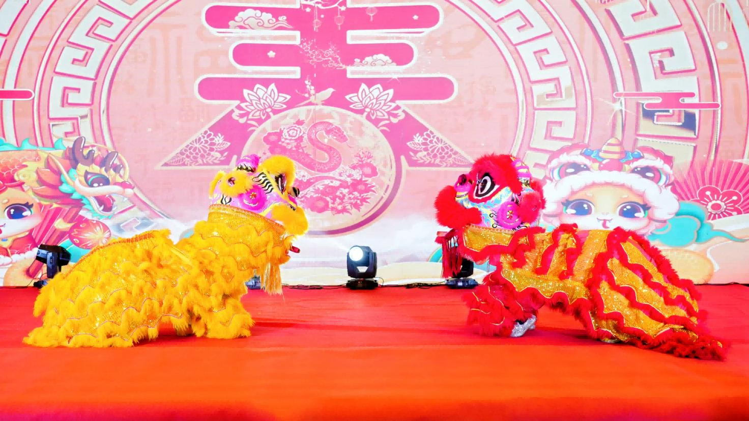 本次年会以欢乐喜庆的“舞狮表演”拉开帷幕。只见灵动的狮子在舞台上跳跃、翻腾,金色与红色交织的鬃毛在璀璨灯光的映照下熠熠生辉,仿佛一团燃烧的火焰,瞬间点燃了现场的热情。那富有节奏感的鼓点,如同激昂的战歌,为这盛大的节日氛围增添了浓墨重彩的一笔。狮子所到之处,寓意着吉祥与好运的传递,也象征着李府集团在新的一年里,将如这醒狮般无畏困难,勇往直前,在激烈的市场竞争中披荆斩棘,再创辉煌。