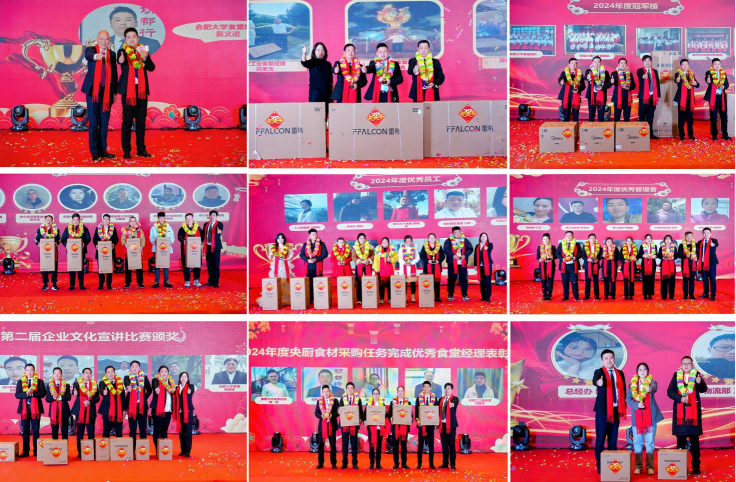 自古成功无捷径,千锤百炼才成钢。2024年全体李府人守望相助,微力聚光,知难而进,奋楫笃行。为表彰先进典型,激发榜样力量,集团对2024年度表现优秀的员工、管理者和团队进行了表彰,分别颁发了最佳进步新人奖、优秀班组奖、优秀员工奖、优秀管理者奖、2024年度冠军榜以及2023-2024年度人物等多项荣誉,共有33个部门(食堂)、40名家人获得表彰。获奖人员纷纷上台领奖并发表获奖感言,感谢集团的信任和认可,并祝福李府在新的一年能够再添佳绩、再创辉煌!