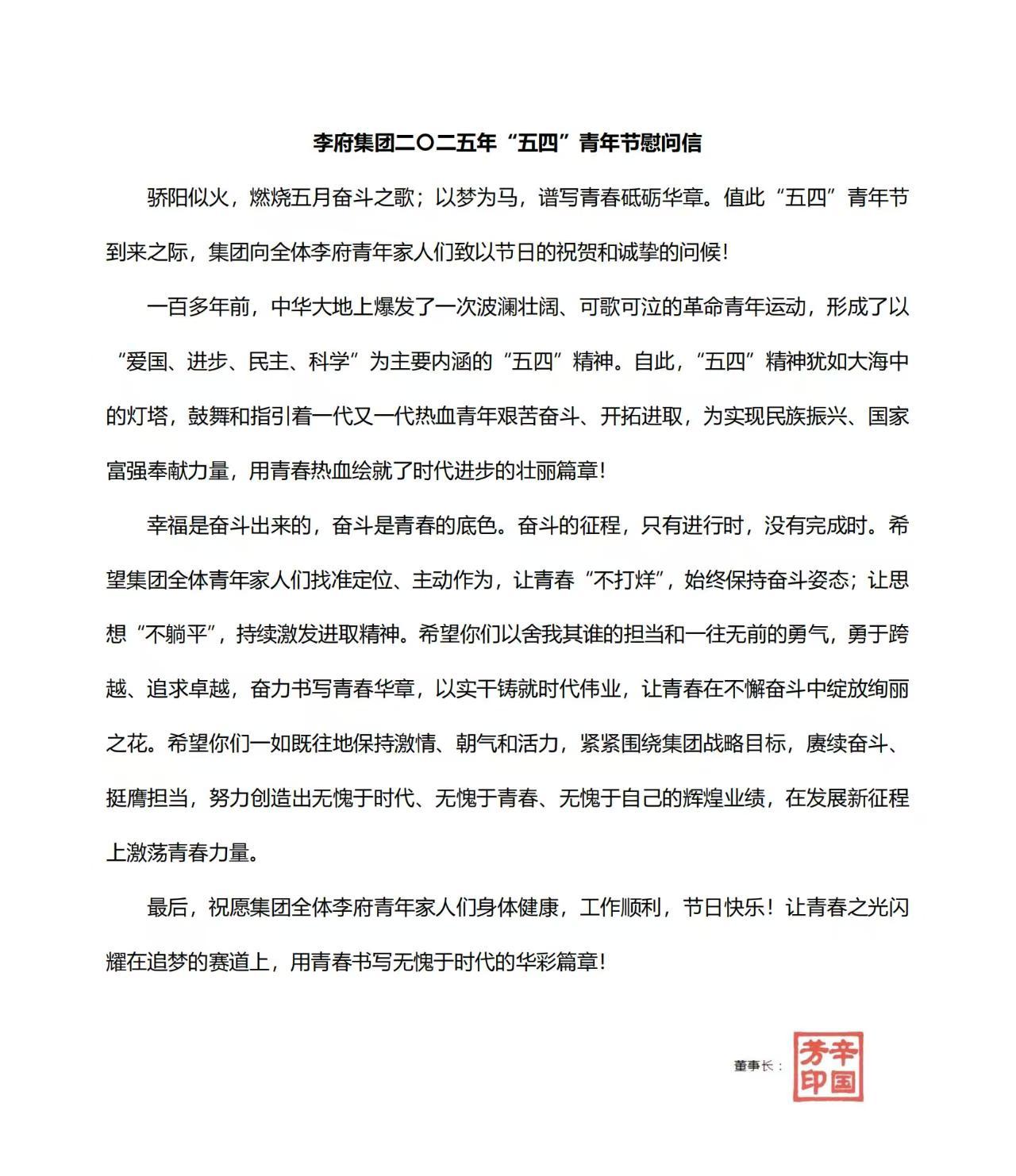 李府集团二〇二五年“五一”国际劳动节慰问信
