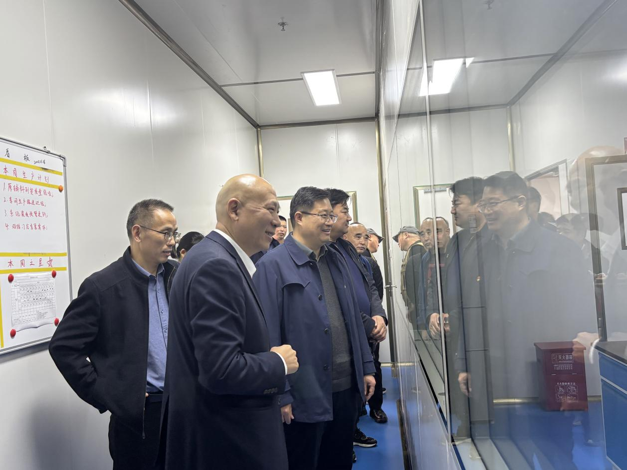 在集团董事长辛国芳的陪同下,姚文均书记和余德锋书记一行首先观看了“李府央厨”宣传片,随后深入生产车间与仓储物流区,实地考察了生产加工、品质检测、产品研发及原料储存等关键环节。