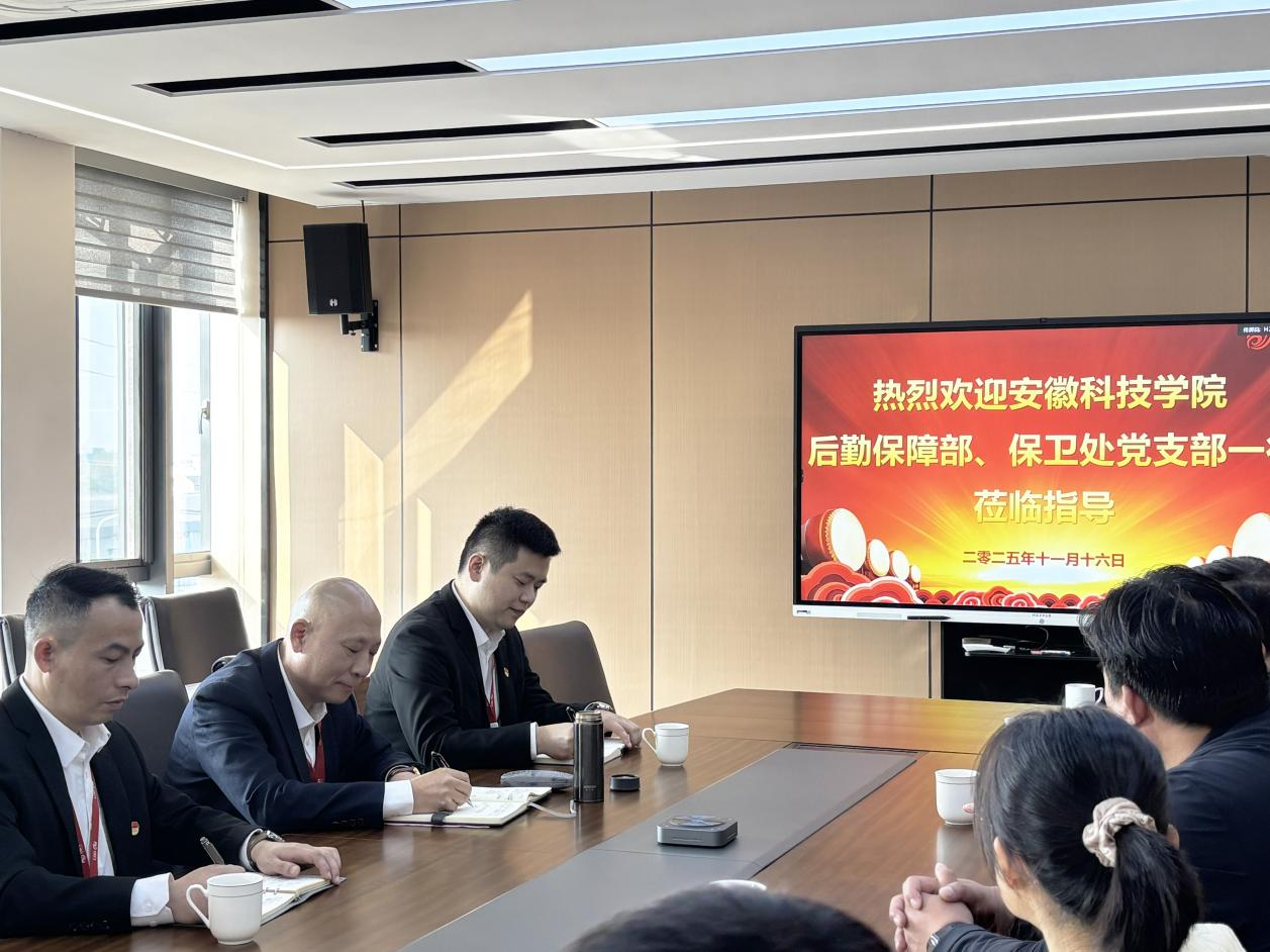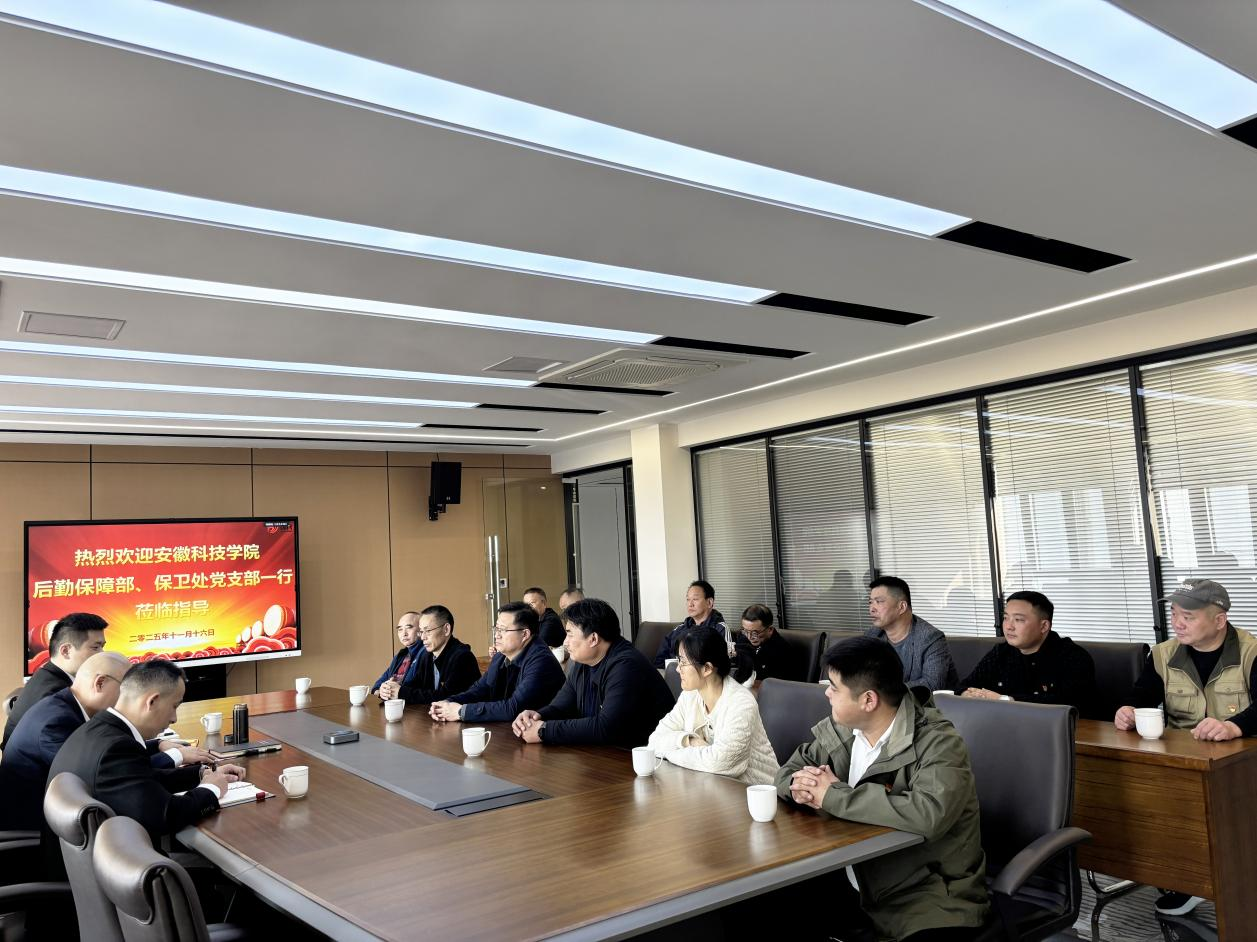 2025年11月16日,安徽科技学院后勤保障部党支部与保卫处党支部联合开展党建活动,一行人在后勤保障部党支部书记姚文均和保卫处党支部书记余德锋的带队下,莅临我司“李府央厨”—创兴食品工厂参观考察。
